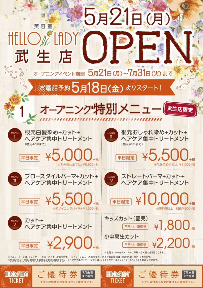 ホーム > PA.ZA.PA. > INFO > 5/21(月) HELLO LADY 武生店 OPEN 5/21(月) HELLO LADY 武生店 OPEN お待たせいたしました!! ハローレディ 3号店 武生にNEW OPEN! 武生店限定!オープニングイベントを開催。お電話でのご予約お待ち致しております。 キャンペーン クーポン